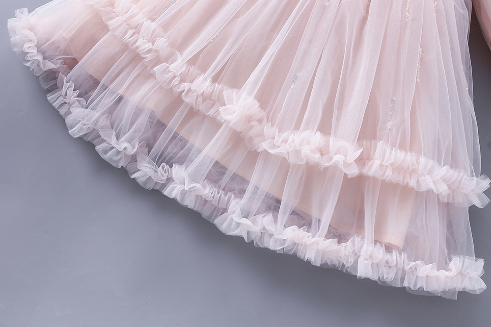 Children's Sweet Long-sleeved Tulle Skirt With A Delicate Mesh Texture
