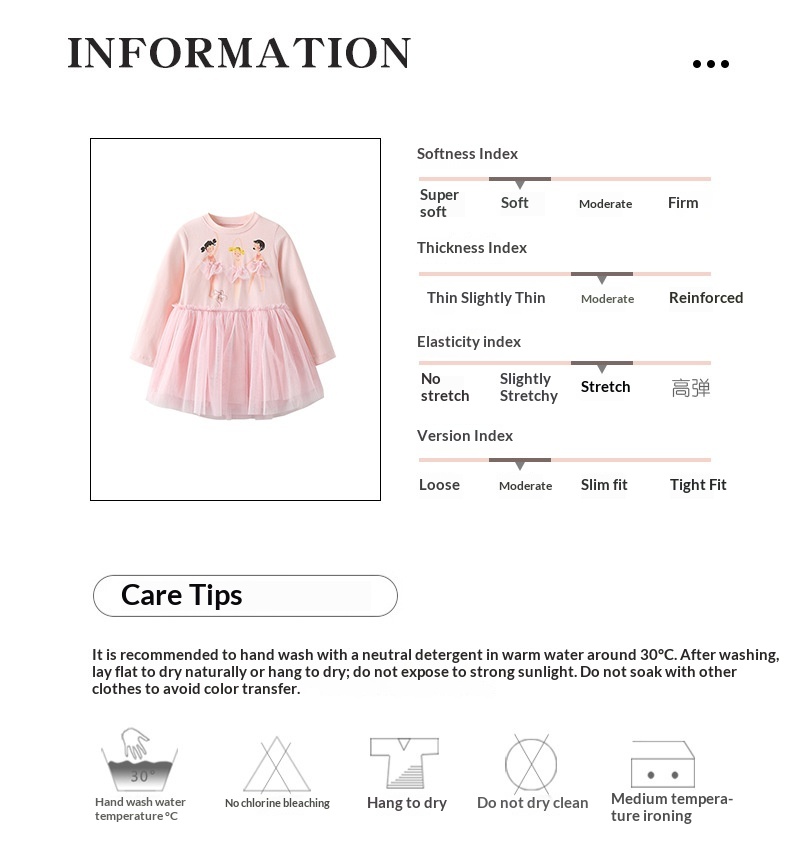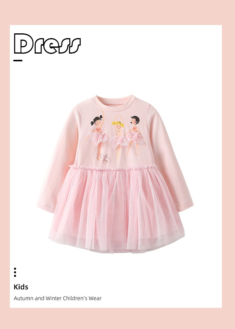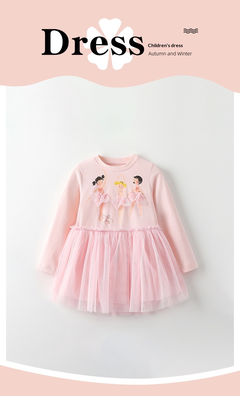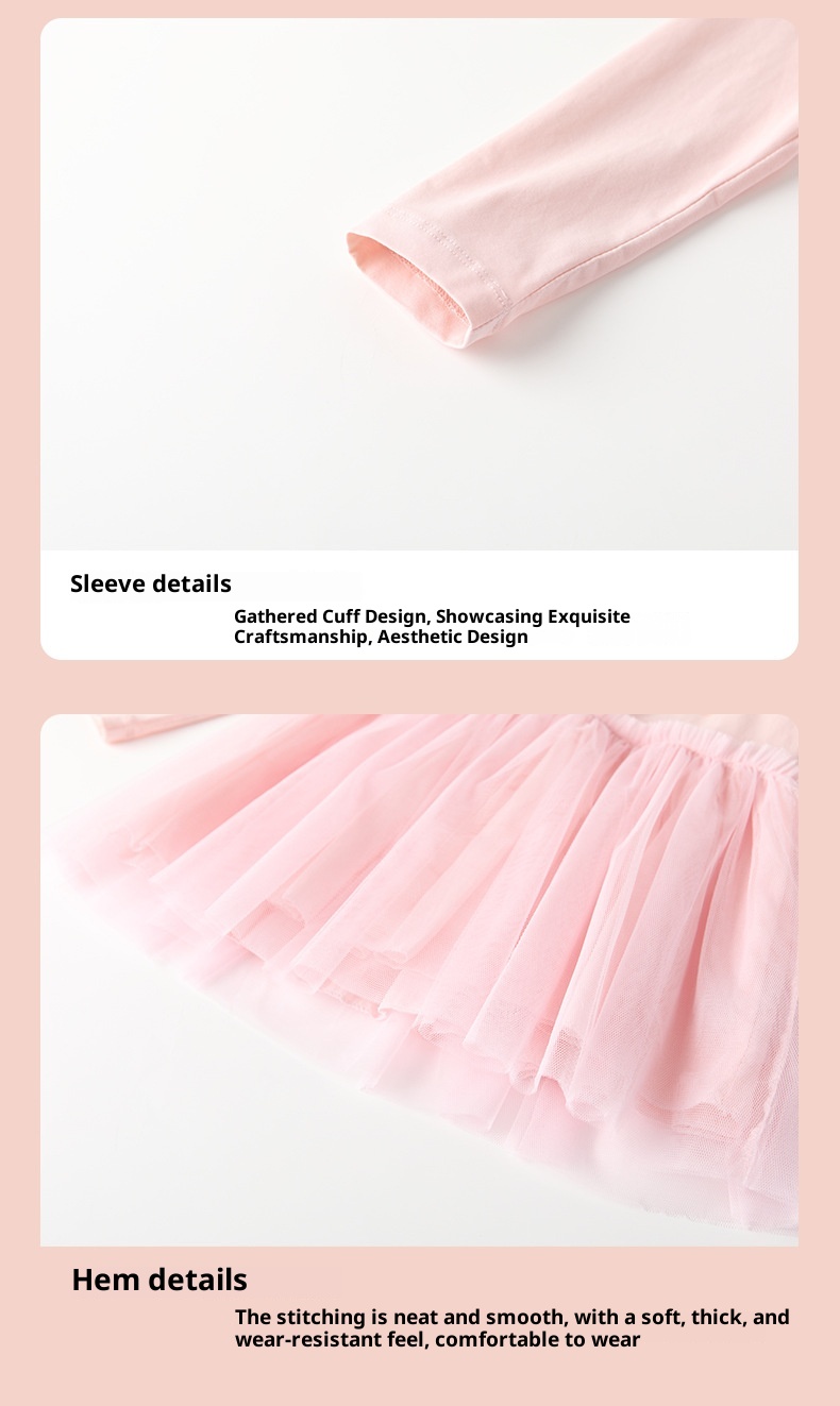 Cute Crew-neck Long-sleeve Dress Suitable For Toddlers
